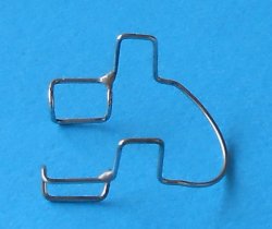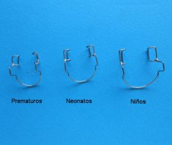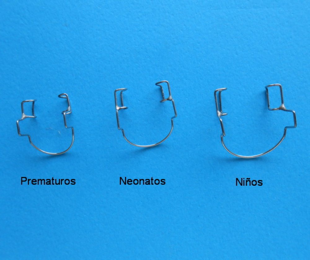 Blefarostato pediátrico de uso general. Está hecho con alambre de acero de 0.7 m.m. de diámetro y su tensión es suficiente para vencer la fuerza del músculo orbicular. El gozne está en el lado temporal Recomendado para examen o cirugía general en niños.