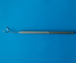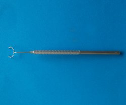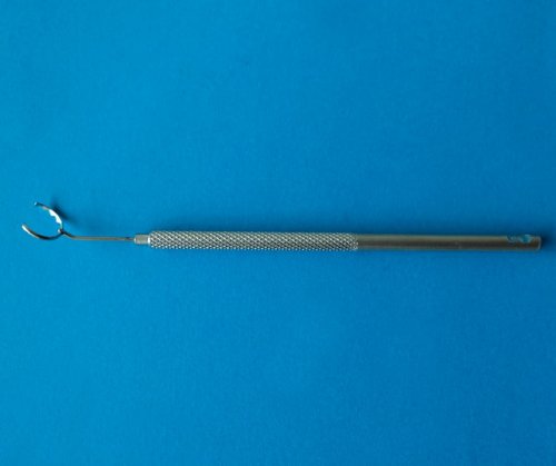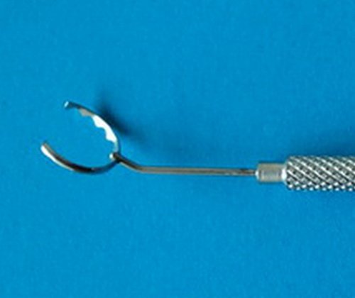 Anillo dentado abierto para colocar sobre el ojo e impedir que se mueva, util para fijar el ojo y facilitar las incisiones en cirugía de Catarata, Glaucoma y otras.