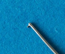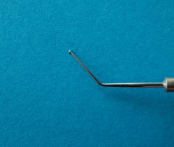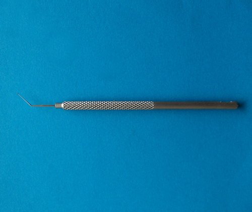 Sirve para manipular lentes intraoculares y para múltiples procedimientos en microcirugía ocular. Tiene en la punta un grosor de 0.2 mm., un vástago de 0.33 mm. a 90º y una prolongación de 0.2 mm.